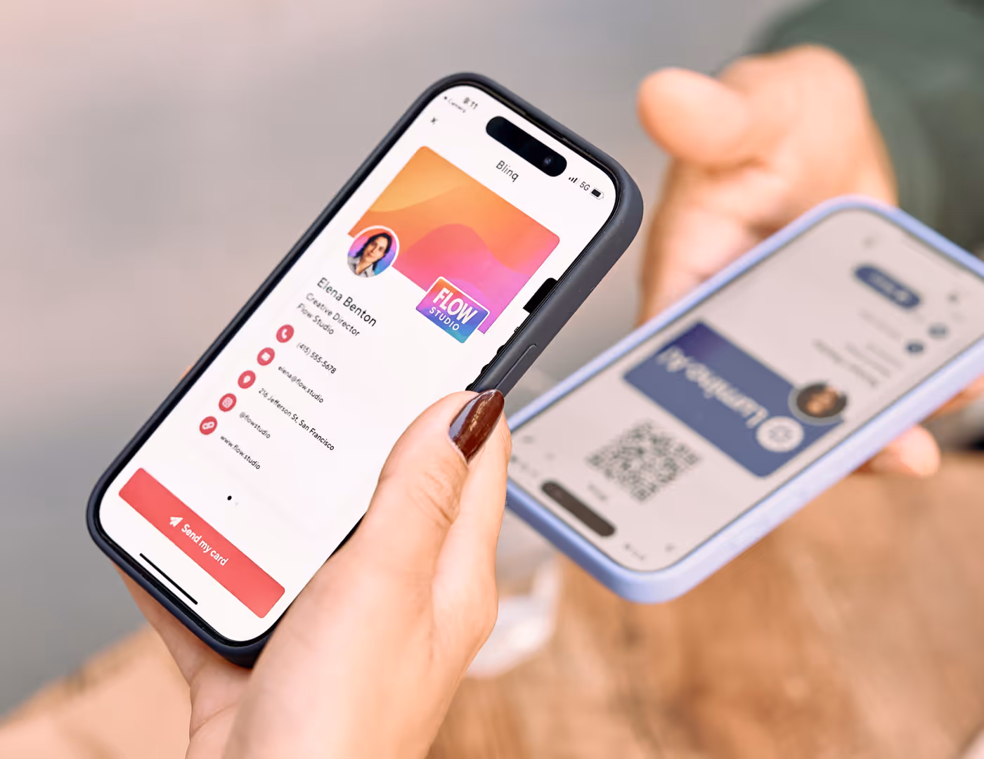 Blinq's digital business cards are modern, shareable profiles that allow professionals to instantly exchange contact information via QR code, link or NFC. Unlike paper cards, they're easy to update and capture your new contact’s info on the spot. By switching to digital, you’ll save money, reduce waste, and unlock integration features like automatic CRM syncing.